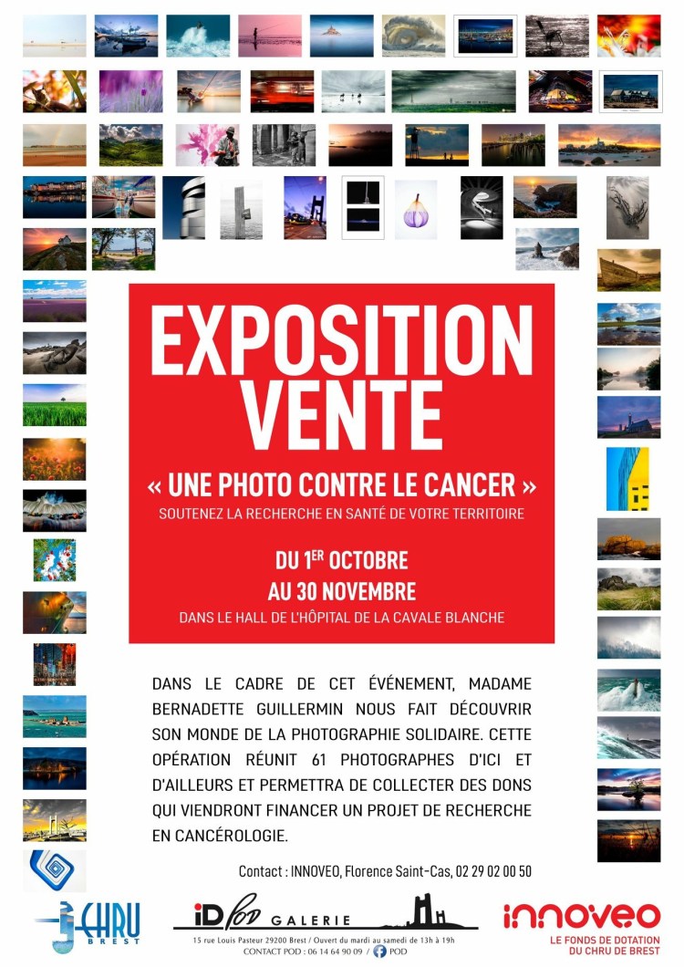 rdv à Brest pour une exposition » une photo contre le cancer » ! L’une de mes photos sera en vente au profit de cette lutte ainsi que 60 photographes . N’hésitez pas à vous y rendre 😀