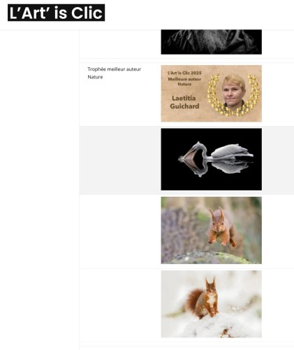 Certaines de mes photos seront exposées au Festival L’Art is clic à Saint Etienne Au Mont, avec mon écureuil qui se classe 2 ème ( médaille d’argent ) en nature , mon pélican 4 eme ( coup de coeur jury 2 ) , en catégorie couleur un portrait de Dylan 4 ème et Jessy également 7 eme 🙂